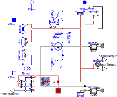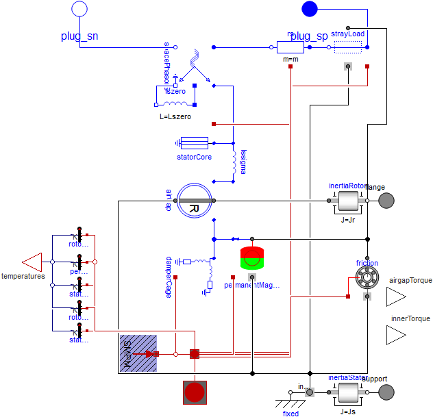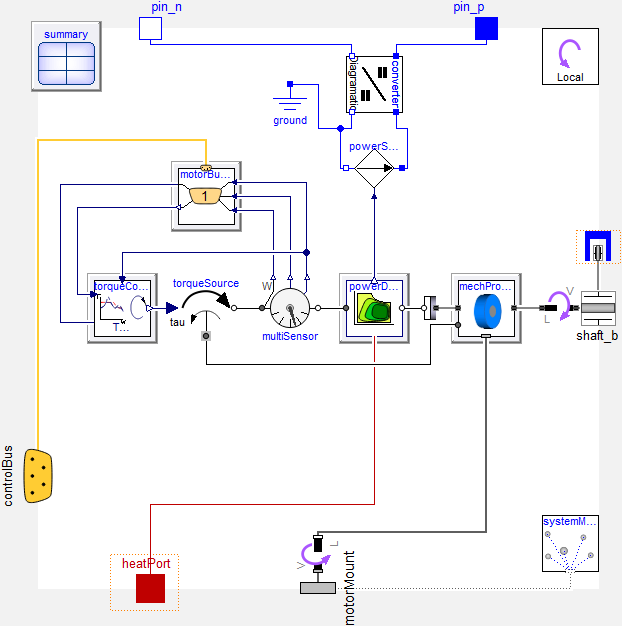 Using the Modelica language, we have developed the VeSyMA suite of application libraries for Dymola. These provide the foundations for modelling all types of vehicle, built on an open flexible model architecture. Models with different levels of detail and different features can be plugged in as needed to answer different questions. The image below shows 4 different models of an electric motor, each with different levels of detail. Starting at the top left is a simple DC motor with inductance and internal resistance; top right is a table-based motor with more representative torque characteristics, including the option to include thermal effects; bottom right is a more detailed synchronous induction machine that couples mechanical, electrical and thermal physics and bottom left is a permanent magnet synchronous machine. All of these can be plugged into the vehicle architecture models.